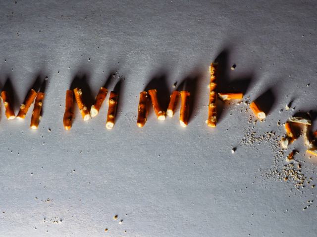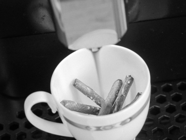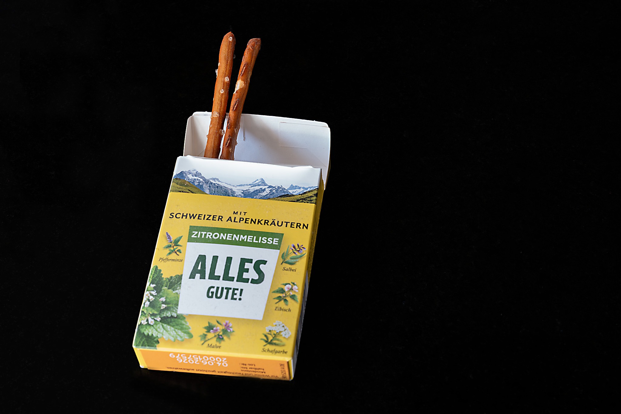 Eine Geschichte für fünf kleine Salzstängeli, die… , Salzstängeli in Pfütze, im Kaffee, als Draculazähne, in freiem Fall, brennend, als Einlage im Zündholzschächteli, als Gepäck auf Plüschtieren, als Paar-Bilder, verbrösmelet, Macrodetails, als Mikado, ICM, Konstruktion mit S., oder gleich mit der Kamera in eine Salzstängeligugge (Salzstangentüte) hinein zur Innenaufnahme, vom Velo überfahren u.v.m. Fazit: es gibt diverse Formen des Gebäcks, es machte Spass, die Objekte zu arrangieren und fotografieren und sie konnten (wenn nicht in Kaffee, Pfütze oder sonst wie geopfert) erst noch gegessen werden. Viel Fantasie sahen wir, viel gelacht haben wir auch. Danke an alle die mitmachten und oder mitfieberten.